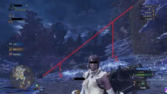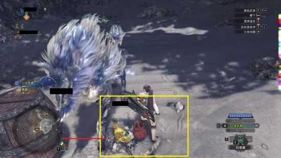 当出生点为山顶,历战王麒麟会向下走,炸弹请置于黄框角色站立处,此处为麒麟必经路线。