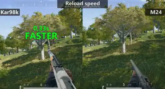 至于换弹夹的速度,98k则要比M24快一些,但也仅仅只有0.3秒的区别: