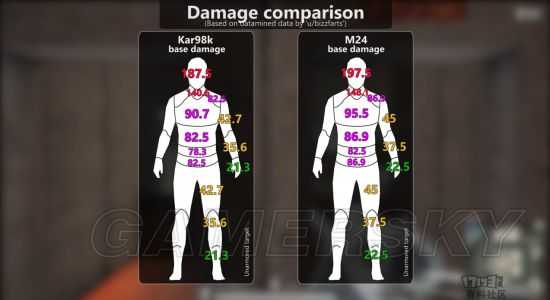 通过上面如此多的对比我们可以看到,虽然两把武器在伤害和子弹速度方面确实存在着一定的差异,并且是M24优于98k,但其他方面这两把武器几乎看不到什么区别。当然对于广大玩家们来说,98k毫无疑问是游戏中最容易获得的一把狙击步枪了,而如果你想追求更高伤害同时运气又足够好的话,那么带上M24放弃98k也同样是一个不错的选择。