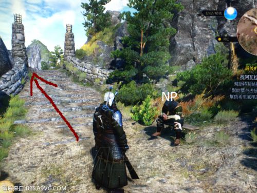 回去找npc对话,然后跑两步到第一个检查点,得到经验,回去接着对话↓