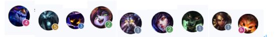 龙王、死歌(或者莫甘娜)、小法、璐璐、卡沙丁、狐狸、狼人、豹女、纳尔、(龙女)。