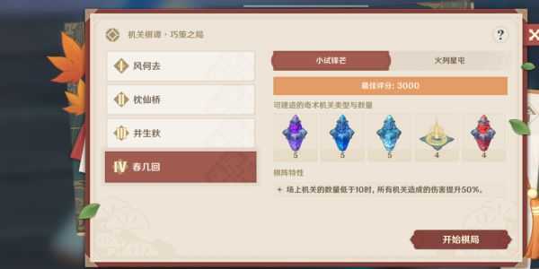 《原神》堇庭华彩机关棋谭第四关也是比较有难度的,很多玩家不知道怎么选择灵签和布阵。此次就为大家带来由“W尤里乌斯”分享的《原神》堇庭华彩机关棋谭春几回满分指南,希望对大家有用。