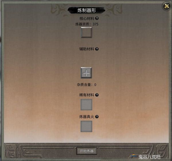 如果你选择了工坊的炼制,你的器型炼制界面是这样的