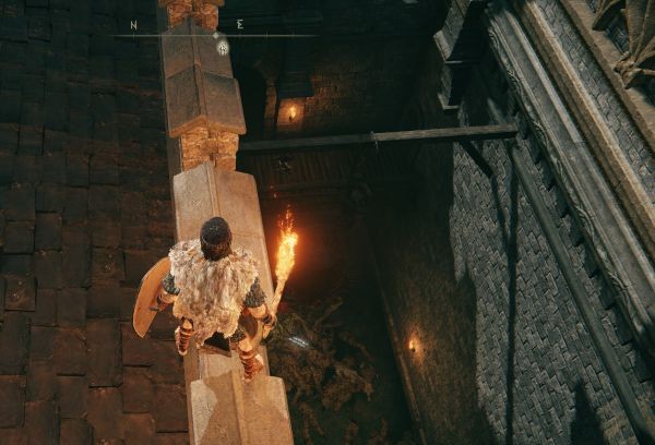 走到头跳到下面平台,那只带火的鸟现在在我们左边