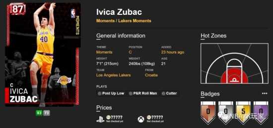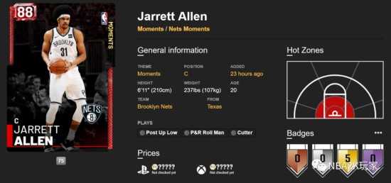 这张祖巴茨红宝石和阿伦属性相似,篮板能力不错,其它地方并没有什么突出的。