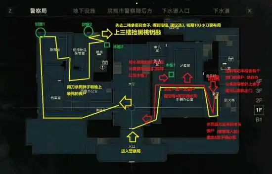 虽然不是最速,但此路线可以完美封住西侧走廊通道,无任何丧尸进入,大幅降低难度,并且能在第一时间拿到副武器。