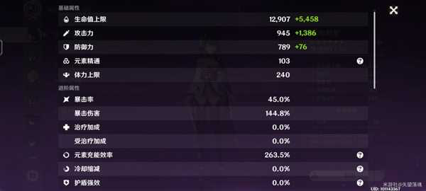 武器当然是祭礼剑了,如果没有高精祭礼且无六命,可以把充能拉高到220以上,踢一脚满能量还是可以的。我的面板。