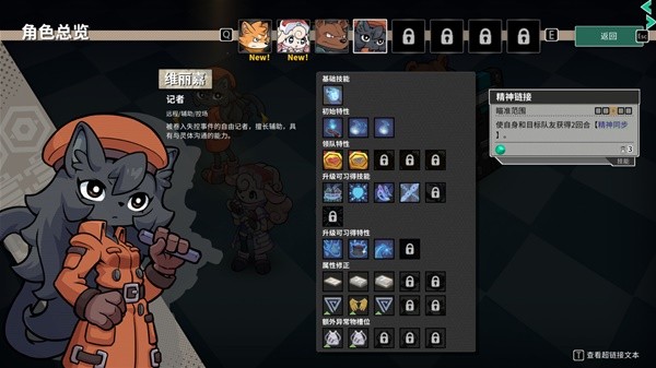 和队友合击的效果,受到“支援”数值的影响,此外部分被动异常物也可以大幅增强其效果,比如你给兔子医师安装一个“+1支援距离”的被动异常物,就会让她的使用灵活很多。在初版demo中,三个角色分别是最佳DPS狗狗、肉盾大熊和治疗兔兔,那么新demo加入了一个辅助专长的猫猫,她有怎样的技能特色呢?