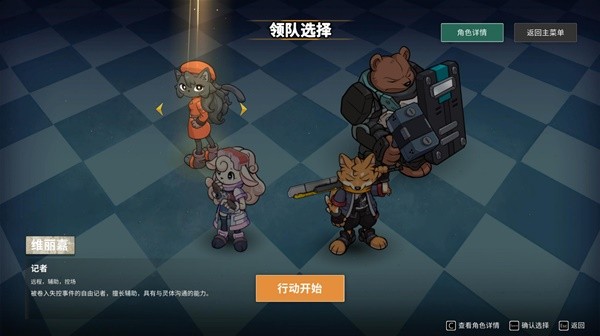 《异界失控》以一个十分SCP的故事作为了开场:城市之中发生了一场不折不扣的灾难,一种紫色黏糊糊宛若触手怪的“变异体”已经遍布了整个城市,我们需要在特工格力其(狐狸)、医师米拉(兔子)、特警斯特雷(黑熊)、新加入-记者维丽嘉(黑猫)的协力下拯救这座城市的危机——从预留栏位来看,还有4个角色应该是在正式版游戏中可以解锁。