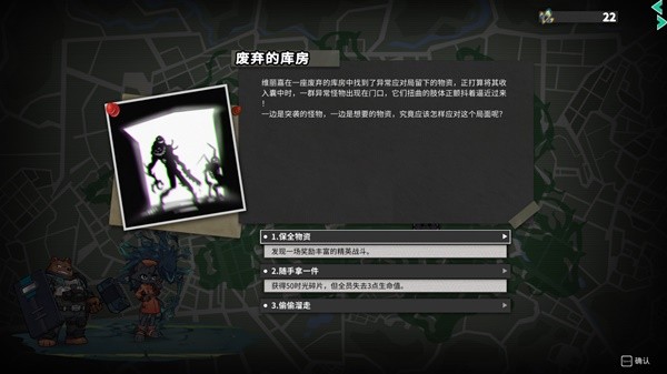 在游戏中,我们需要从上述队员中选择一名领队(会获得额外的领队加成),在城市消耗时间完成各类事件收集“情报”,最终击败BOSS完成关卡。