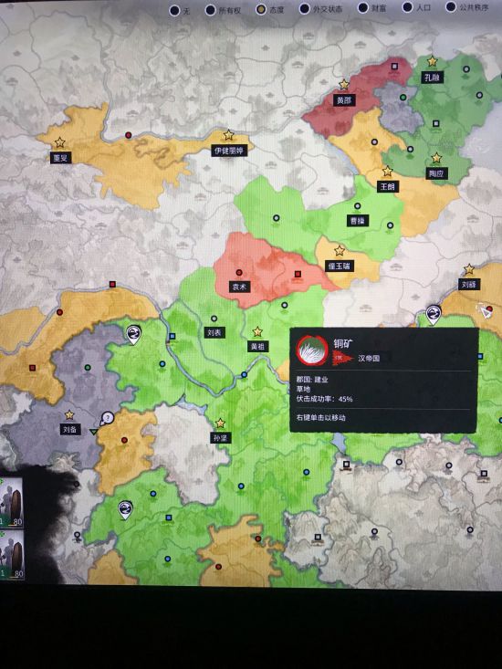 上来后一路认怂给钱给装备,跑到孙坚这里会触发结盟(瞬间20得关系),之后,找到这个稻田,一路使用吞并吧。