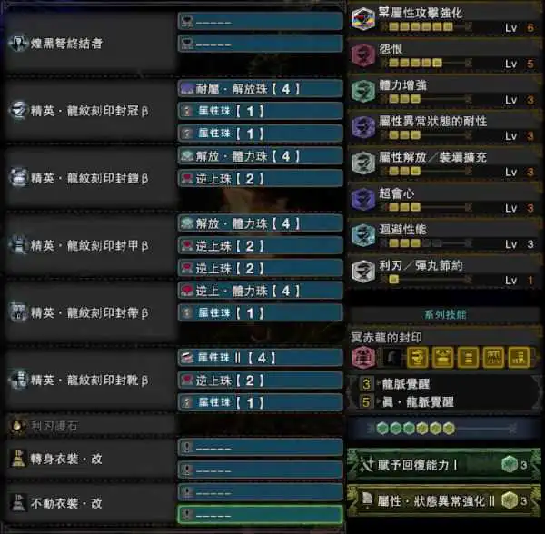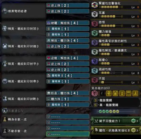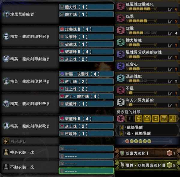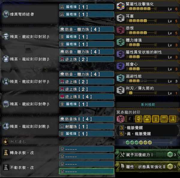 因为属性弹的配装是通用的,所以只放一套,改属性就只需要换属性护石或属性珠即可。