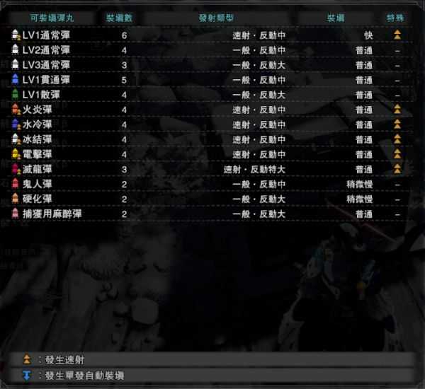 然后无零件全属性弹种(灭龙弹除外)中后座普通装填,感觉可以至少把后座压到小或者装填压到快吧,然后就去做了一把,结果一看反动表和后座表......这弩的单种属性弹居然可以同时做到反动小装填快。
