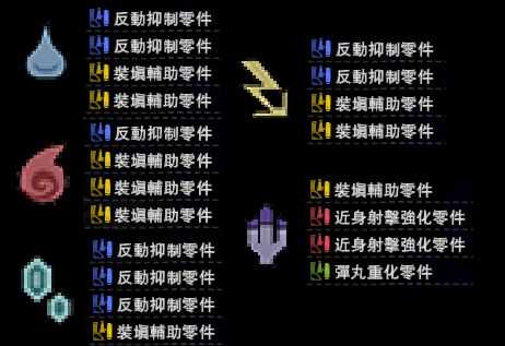 零件选择请看最开头,有一张图标了煌黑弩打属性弹的零件选择。