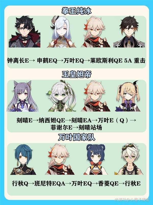 雷神E→万叶E(Q)→班尼特QE→九条EQ→雷神Q