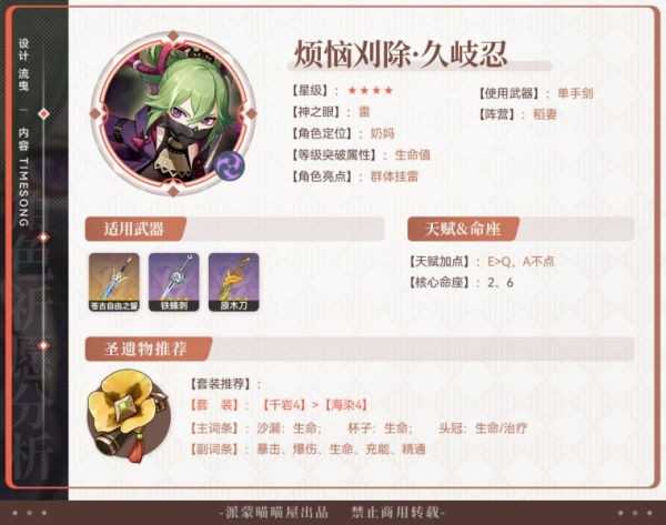 久岐忍:如果玩激化体系缺奶妈,或玩超绽放,可以考虑抽取。