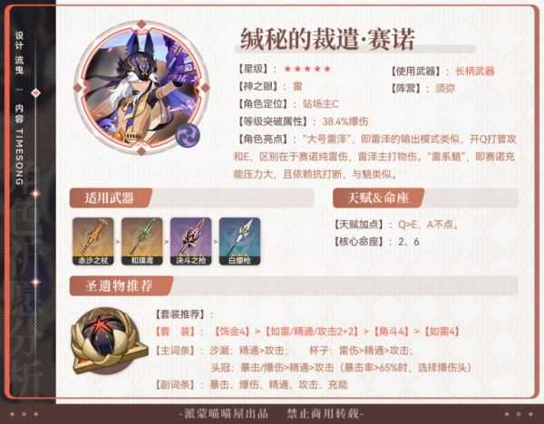 赛诺:3.1表现一般,不排除后续版本逆袭的可能,缺少雷系主C时,可以考虑抽取。