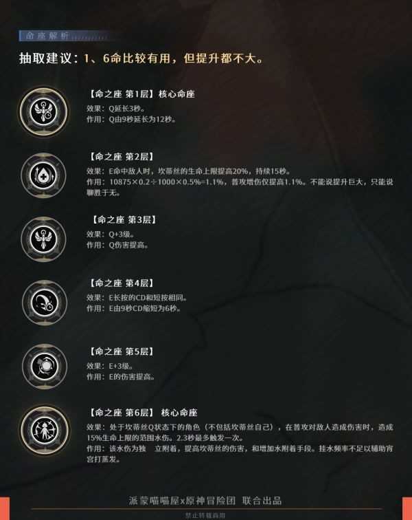 命座提升幅度:2、6命提升最大,1、3命提升较小。