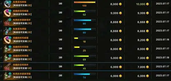 根据额外效果和随机刻印来判断是否有职业需要,在看点数和品质来决定价格,首饰贵不贵,主要看他的稀有程度和需求,所以项链和带有职业刻印的首饰会更加昂贵一些,可以看到拍卖行里价格最高,卖出最多的还是项链