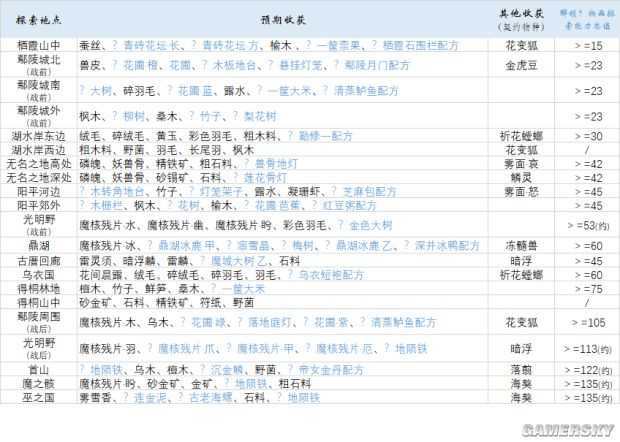 鄢陵城北、城南、城外都是只有战前鄢陵才可以去的,过了就没有了。光明野也是,战前和战后的获得物不一样。探索获得能力值是慢慢试出来的,有些没有试到临界值的就标注了一下。