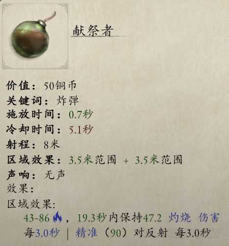 主力炸弹,价格低廉,伤害巨大,火焰爆炸和后续灼烧累计可以提供600+伤害