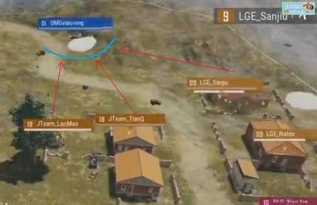 可以看到OMG此时已经被JTeam和LGE两支战队死死架住,如果不使用烟雾弹直接强行转移,他可能在数秒内就会遭到敌人的击杀。先手的烟雾弹虽然无法保证你能顺利的冲进房区,但是数量足够多的烟雾弹起码能为你架起一道无形的视野掩体,最大程度保证你的安全。