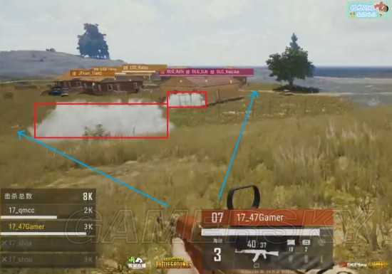 而一旦我们在视野上处于劣势,很可能很快就会被敌人包围从而导致团灭,此时烟雾弹就可以发挥十分重要的作用。当我们并不是很清楚敌人的具体位置时,我们大可以在自己容易受到攻击的方向提前封烟,从而对潜伏的敌人造成视野阻碍的作用降低我们的死亡率。