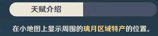 2.角色天赋:队伍中带可莉时,左上角小地图会显示周围的蒙德特产位置;带七七、烟绯时,显示璃月特产位置