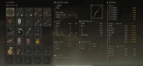 首先去获取一块好盾牌,大盾最好,因为大盾格挡消耗体力特别低。强化+10,我自己带的是圣树纹(游戏综合最好的大盾颜值也是一等一,石头盾更好但是点数门槛较高),大家玩这个游戏可能都忘了,其实游戏本体最初的教学关卡第一式,盾反。在dlc里特别好用。然后是武器。