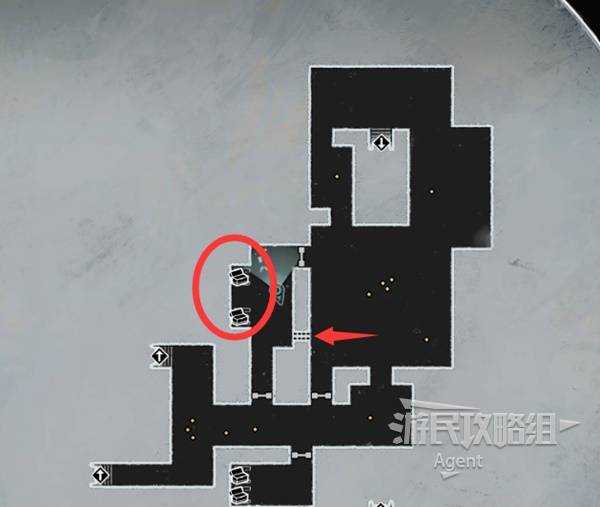 而南面这两个宝箱,需要先继续往前走,抵达最南面的区域后,才能钻墙洞进去拿。