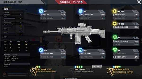 每个角色在对局开始前都可以选择强化武器的超弦系统,一共有三个觉醒技能,觉醒一是固定的,觉醒二、三可以任选一个,所以在每次战斗开始前可以先选择超弦的解锁强化,提前解锁超弦也是会增加自身战斗力的~