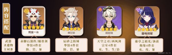 班尼特负责增攻加治疗,雷神负责后台挂雷以及回能,提高队伍的续航循环能力。