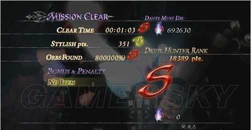 不过很多任务中全红魂收集还是有些麻烦的,万一不小心错过了几个红魂拿到了A评价那么久肯定木有S了。而且风格分在很多没有BOSS的关卡如果不时常刻意的去蹭一些pts的话也很容易丢失不少分。然而时间限制却意外的宽松,大部分关卡S时间的要求只需要30分钟之前完成就可以了,一般只走流程可能15~20分钟就搞定了,所以剩下的时间我们可以选择去一些无限刷怪的地点多刷一些来增加一下风格分或者可以绕远路去收集一下红魂,这样一来即使我们用道具加血,一路磕磕碰碰,也能勉强达到S,对于我们这种手残来说是个不错的选择。