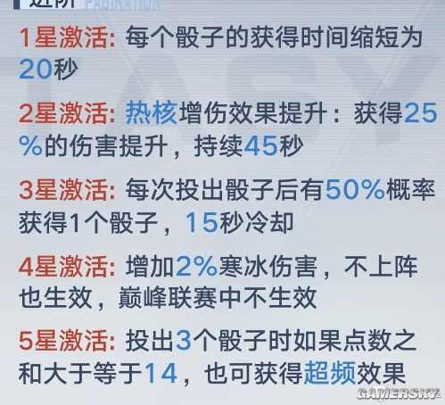 所以骰子3星以后相当于:获得一个稳定的25%伤害加成+40秒赌一次的技能刷新+低概率6秒无限连携。