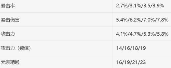 由圣遗物属性表得出暴击率:暴击伤害:攻击百分比=1:2:1.5(设为一单位)。