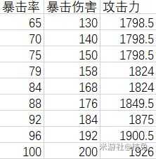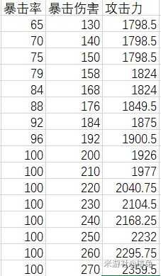 暴击满前攻击为与暴伤的比例在动态变化,暴击满后攻击:暴伤大致为9:1上下。