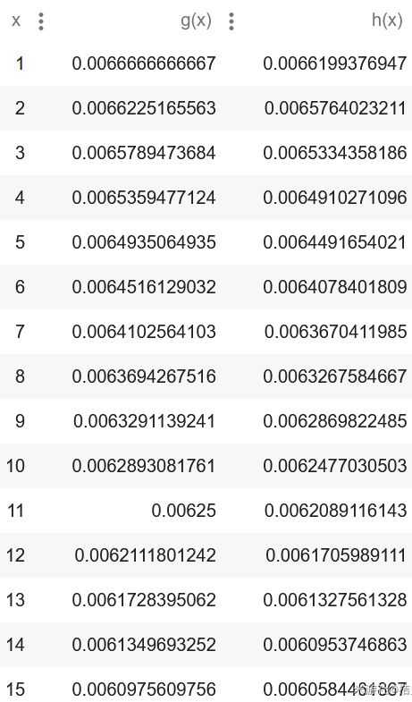 每五单位为一组用傻瓜式从大到小加点法补充刚刚得到的表格并取有参考价值的部分: