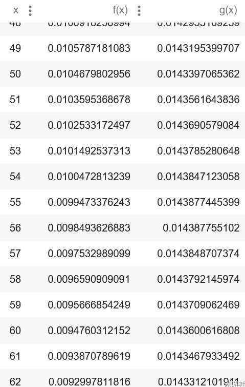 下图为每单位双暴和每单位攻击的收益(f为攻击,g为双暴):