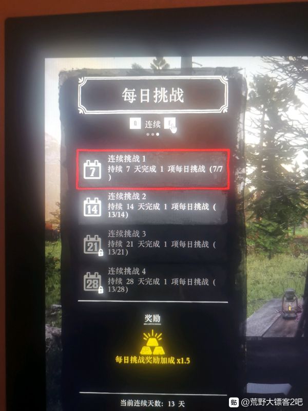 4.每日挑战:每日挑战是新老玩家获取大量金条的主要方式。每日挑战的任务当你熟悉地图之后相对来说都是比较好完成的,但是像猎杀某某动物,收集某某植物啥的这种任务很多萌新玩家并不认识这些动植物,而且也不知道他们的位置在哪。这时候可以去百度搜索一下,大部分都能找到。而每日挑战的机制也比较特殊,是一个持续性的任务。你最早的时候一个每日挑战能获取0.2金条,但当你每天不间断的做每日挑战,累计一定天数,每日挑战的单项奖励会逐步叠加。这就使得每日挑战的长期收益变得相当可观。新老玩家每日必做!