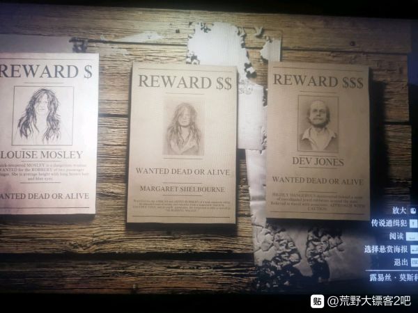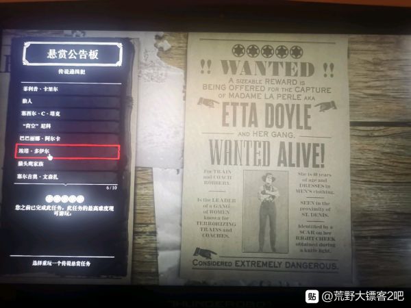 传说通缉犯:好像是赏金猎人等级到5级之后就能解锁传说通缉犯。在悬赏公告板的右下角能打开传说通缉犯那一栏。这里涉及到吧里经常提到但是萌新不清楚的“挂艾塔”。“艾塔”指的是传说通缉犯里面的“艾塔•多伊尔”这个任务。一般来说传说赏金任务都较难一些,而“艾塔”则算是一个“bug”,因为这个任务你不需要打架,只需要前期在地窖或者上方的通气口里面,等待5分钟,直到艾塔说出“快,我们快走”这句话的时候,再掏出绳索下去抓住艾塔。然后放在马背上挂机30分钟再交货就行了。而这时候艾塔的小弟基本都在逃命,只会无关痛痒的放两枪。这个传说赏金异常简单,而单人收益是0.48金条+225美金+1500人物经验。所以“挂艾塔”成了许多玩家最青睐的刷钱方式。