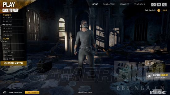 只要知道右上角三个按钮从左至右分别是:刷新主界面(各种进不了绝地岛的时候用)、设置、和结束游戏。将鼠标放在左上角PLAY按钮上,会显示服务器列表。