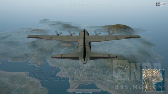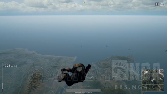 飞行状态:屏幕正上方是指南针,会显示你在地图上的标记(m键打开地图,鼠标右键可以标记地点)。左下角是你的高度和速度,飞行时可以摁住前进(默认w),加快飞行速度,抬高视角让自己尽可能慢的落地(此时速度显示126km/h),放低视角会加快落地(最快234km/h),落地前会自动开伞,或者自己在自动开伞前决定开伞时机。
