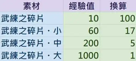 注:有些武器不是从 1 等开始往上升级,所以实际需要的量会再少一点。