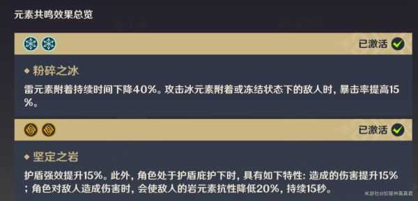 虽说,双岩buff对盾的厚度提升真的不大,但是2-1-2提到的,盾覆盖问题,利用岩系的特产——结晶盾能很好的解决!再次强调,盾不能被叠加,也就是说每次被攻击,猫猫盾和结晶盾(或者其他盾)都是同时受到伤害的。所以,咱们发现地上有结晶盾的时候,不能第一时间冲上去捡,而是先考虑猫猫盾是什么时候开的,尽量在开盾的 5-6秒(开盾后,一般打出2-3个重击就差不多了!)后再去捡地上的结晶盾,这样才能最大限度的提高盾覆盖,平时瞄准的时候也要习惯慢慢地向地上的结晶盾靠近,做好准备。等猫猫盾消失,身上有结晶盾的话,可以多打一发重击,再切猫猫开盾,但不要太贪,万一失去了盾,等于马上丢失了40%的重击加成。这点要注意!