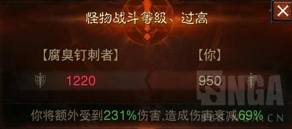 玩家在任意地方打怪时,如果怪物的战斗等级高于玩家的战斗等级,就会触发碾压,玩家受到伤害提高(包括环境伤害,比如地板上的火),玩家造成伤害降低。