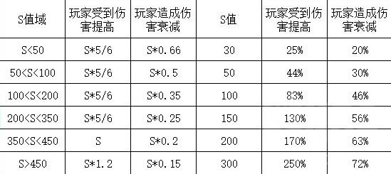 实际观测怪物伤害提高、玩家伤害衰减和战斗等级差值应该是个曲线函数,本人没有算出具体函数关系,下面只是列出大概数值,仅供参考。