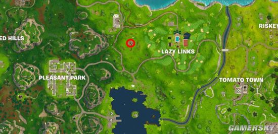 通过完成所有本周挑战,解锁加载背景图,本次的焦点在恐龙男手里的地图上。第一周隐藏星的位置位于欢乐公园和混沌大地之间,您可以在这里找到地图上的雨伞状地点。确切的位置已标记在下面的《堡垒之夜》地图上。