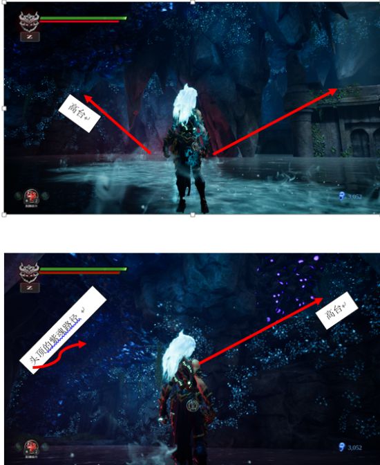 如图所示,右边是原来有一个火种的 高台,左边犄角疙瘩的上面,有一个 紫魂才能打破的墙。