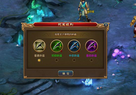 龙脉挖宝需要使用铁镐,铁镐分为普通、初级、中级和高级铁镐四种。