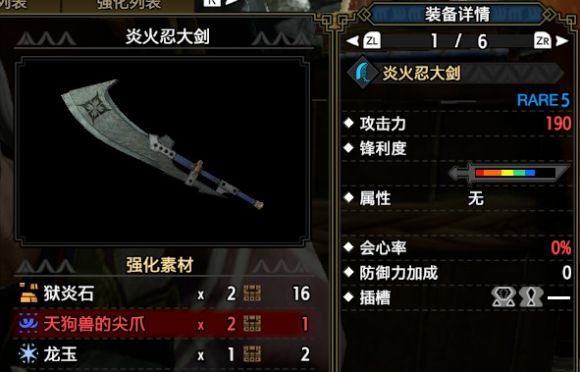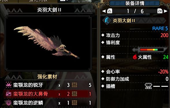 如果之前有攒过素材的话这把大剑刚进HR6应该可以很快做出来,这武器终于混出头了。